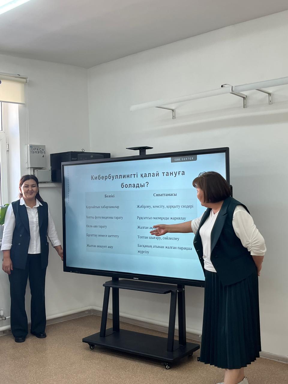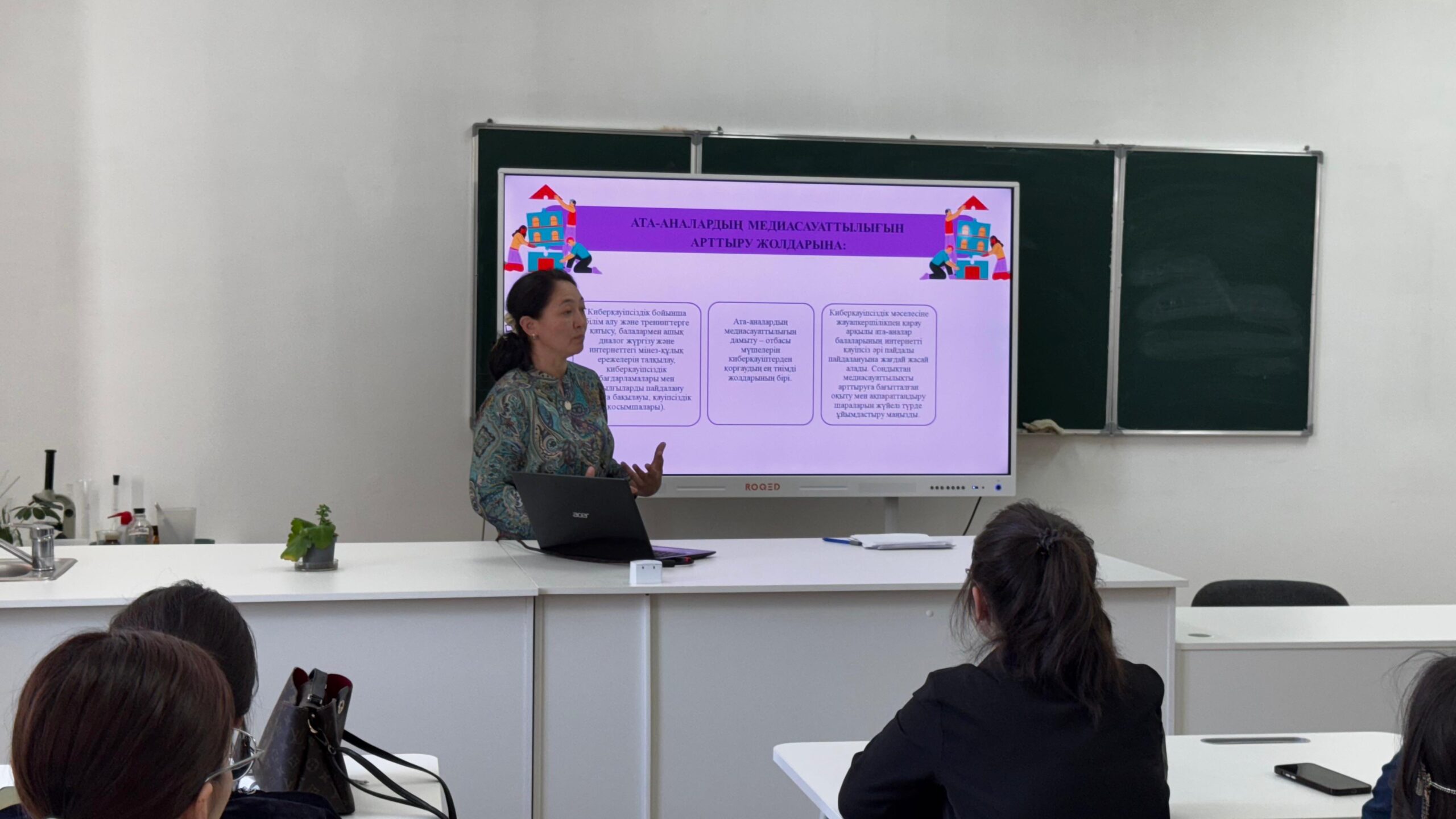 Әдістемелік семинардың мақсаты – кибербуллингке қатысушылардың психологиялық саулығын сақтау және қалпына келтіру. Семинар барысында цифрлық ортада кездесетін кибербуллинг жағдайларына мұғалімдердің тиімді әрекет ету қабілетін қалыптастыру және психологиялық-педагогикалық қолдау көрсету тәсілдерін меңгертуге арналғандығы айтылды. «Кибербуллинг жағдайындағы мұғалімдердің рөлі» тақырыбында жоба орындаушысы А.Миндетбаева баяндама жасады.